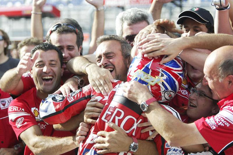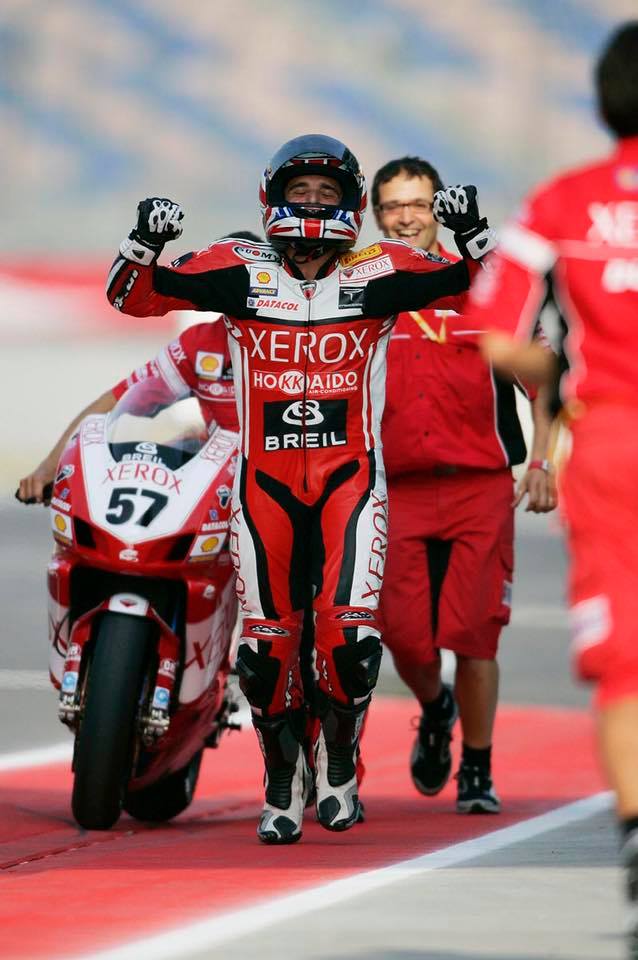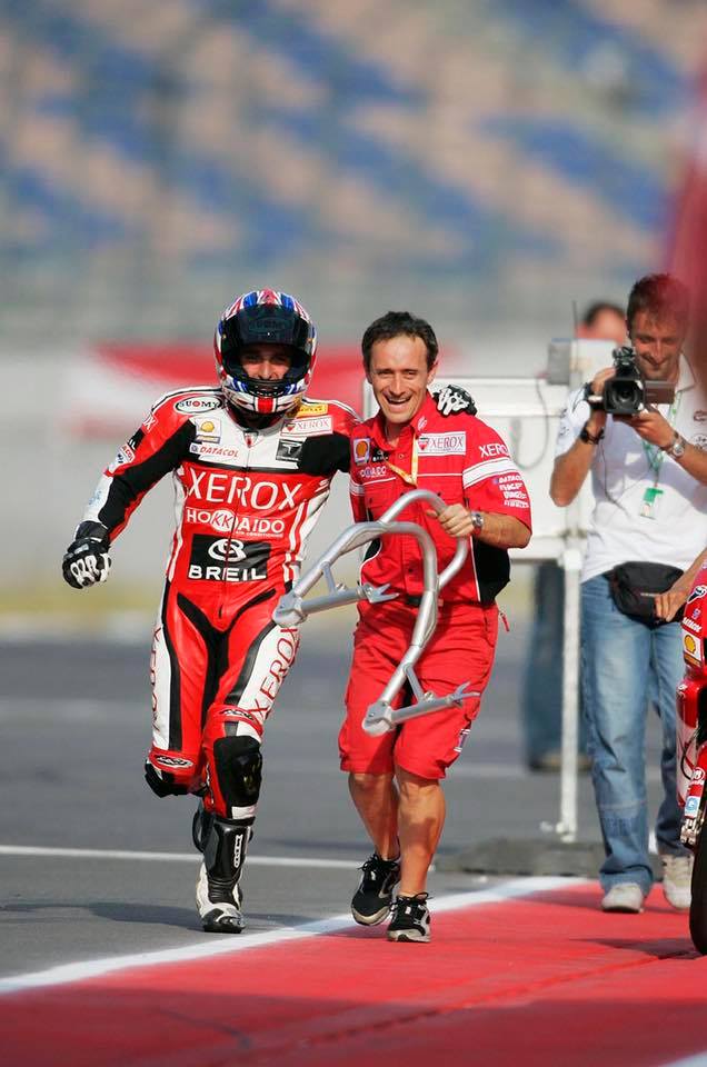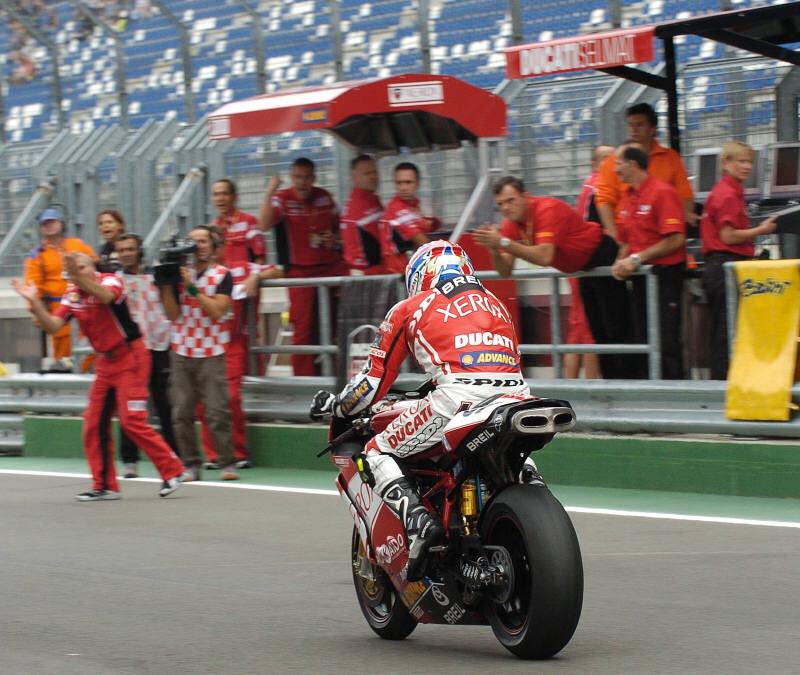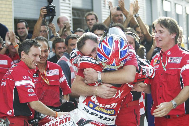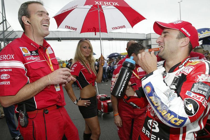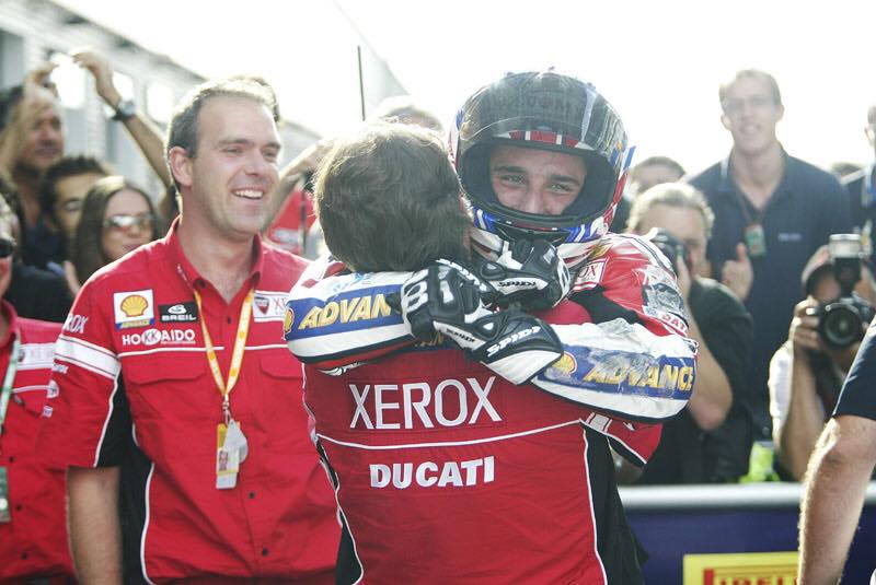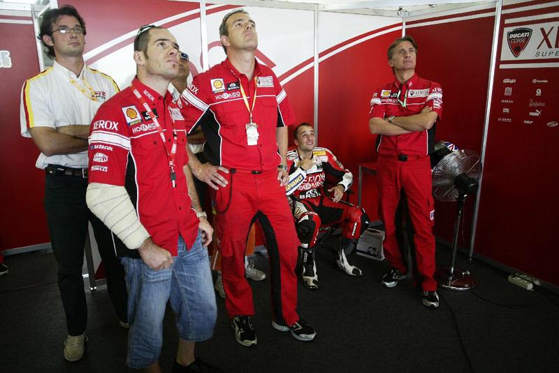 La stagione successiva Ducati Corse non rinnovò i suoi piloti, inserendo invece nel proprio organico il giovanissimo Lorenzo Lanzi e affiancandolo all’eroe di ogni Ducatista e reduce da tre sfortunate stagioni in MotoGP: Mr. Troy Bayliss.