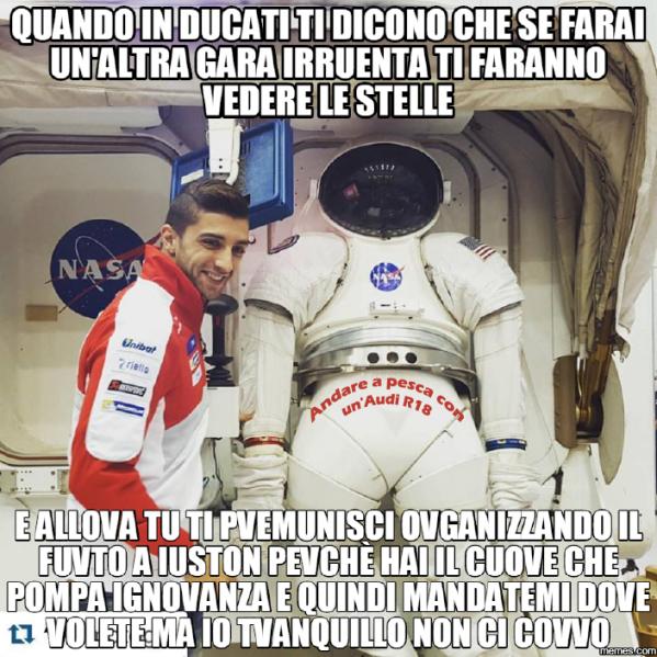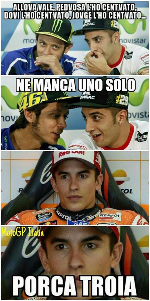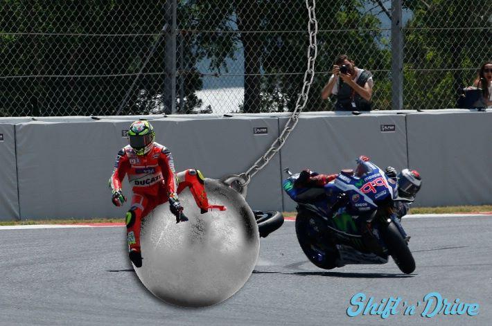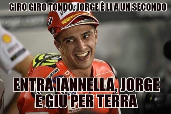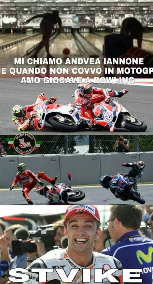 Andrea Iannone ha il brutto vizio di farne un po’ troppe ultimamente. Dal volatile polverizzato con una testata degna di Zidane in Australia, all’atterramento del compagno Andrea Dovizioso a 50 metri da un doppio podio Ducati. Ma il top è stato oggettivamente raggiunto nel momento meno indicato per farlo, ai danni del pilota meno indicato da abbattere. Perché se abbattere Dovizioso è stato un duro colpo ai rapporti tra Iannone e la Ducati, con lo strike in salsa spagnola ai danni di Jorge Lorenzo il problema è diventato a carattere worldwide. E il worldwide web si è giustamente scatenato. Andrea Iannone è molto amato per la sua aggressività ma questa volta l’ha fatta grossa. La mole di immagini che si trovano sul web per scherzare su quanto accaduto (e su quanto potrebbe ancora accadere) è impressionante.