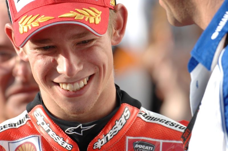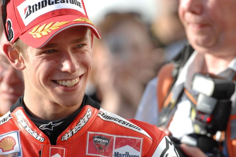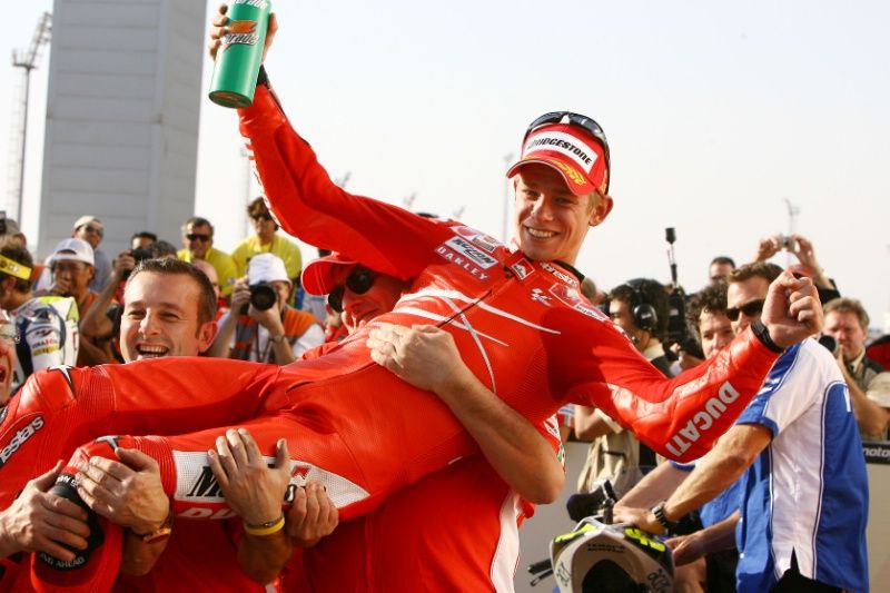La ciliegina sulla torta fu poi rappresentata da un pilota australiano che all’epoca aveva un soprannome scomodo. Casey Stoner vantava infatti il titolo di Rolling Stoner del paddock, per la sua innata attitudine a creare lavoro extra per gli addetti alle carene dei vari team in cui aveva corso. Nel 2006 aveva fatto una stagione di debutto splendida sulla RCV di Cecchinello ed era stato cercato da mezzo paddock per il 2007. Alla fine scelse la Ducati e mai matrimonio fu più applaudito tra pilota e moto. Passione immediata, intesa perfetta e tanta voglia di rendersi felici a vicenda.