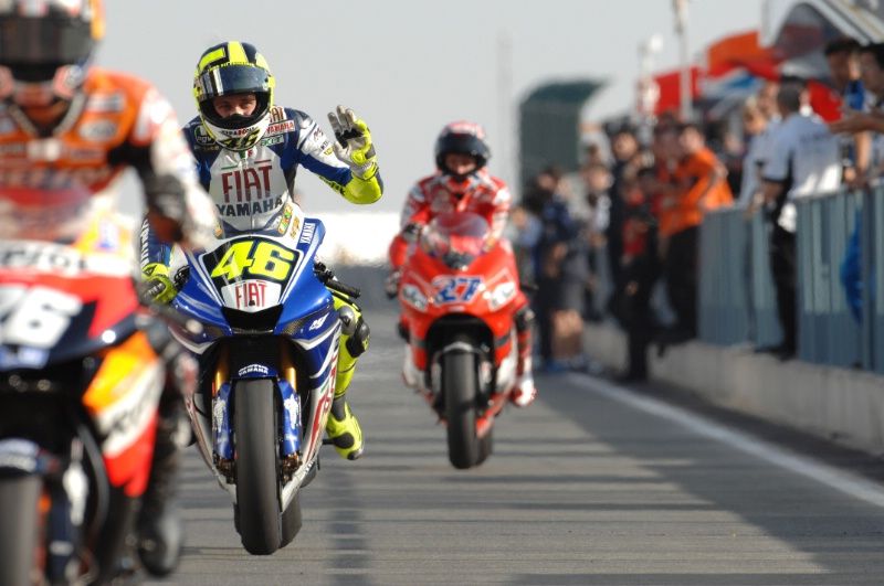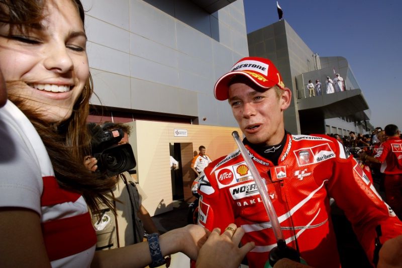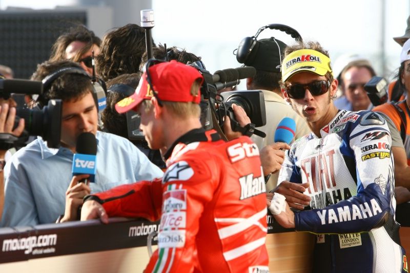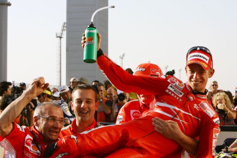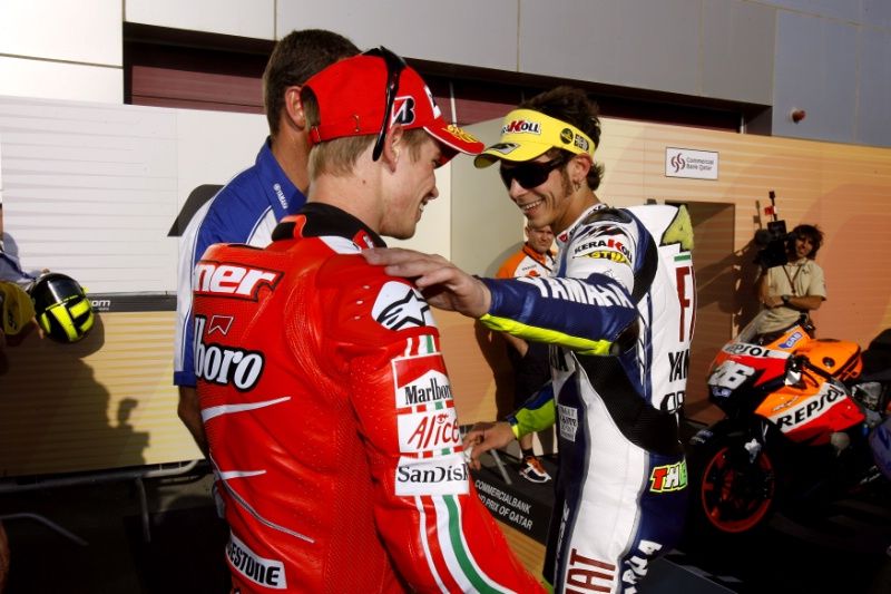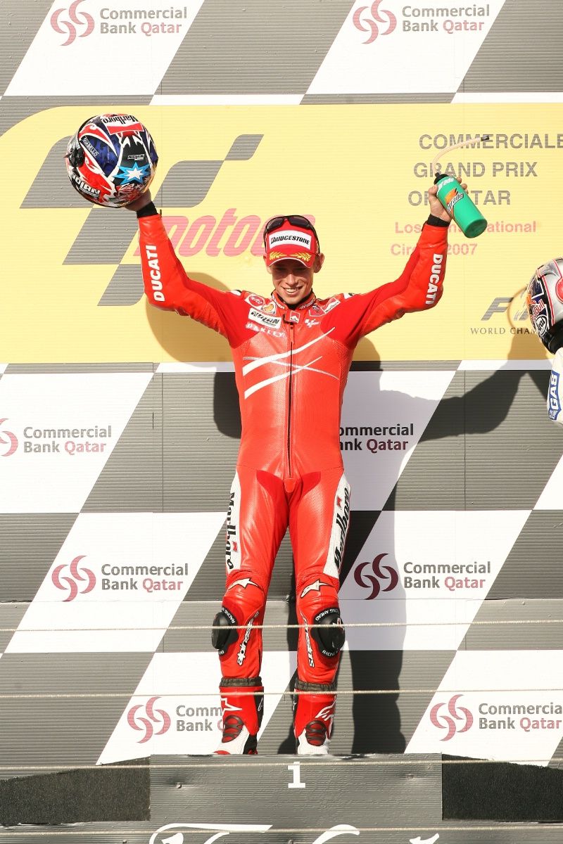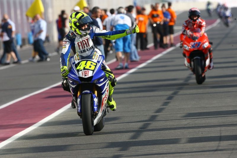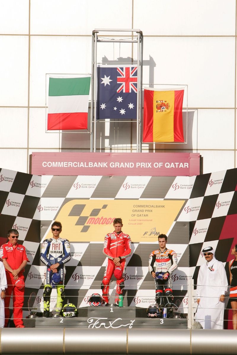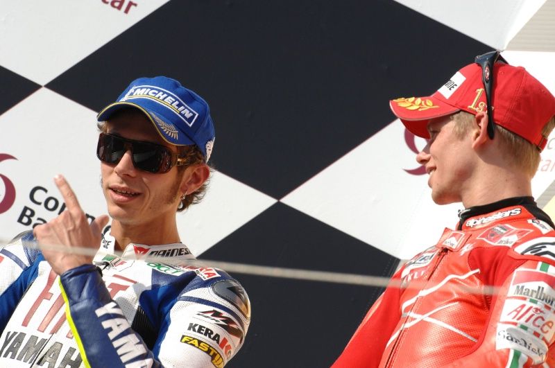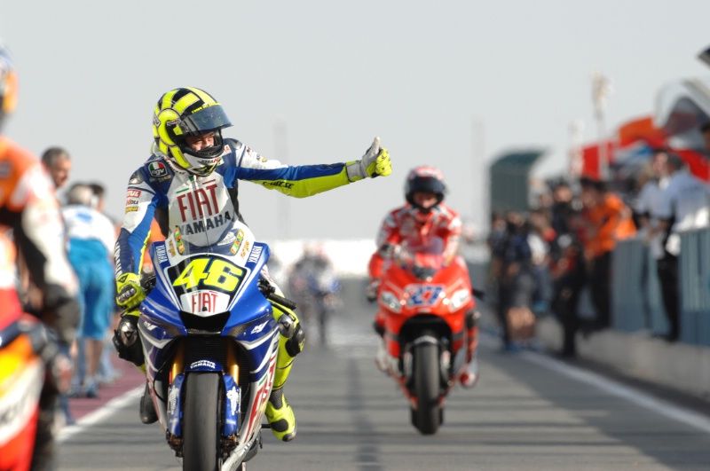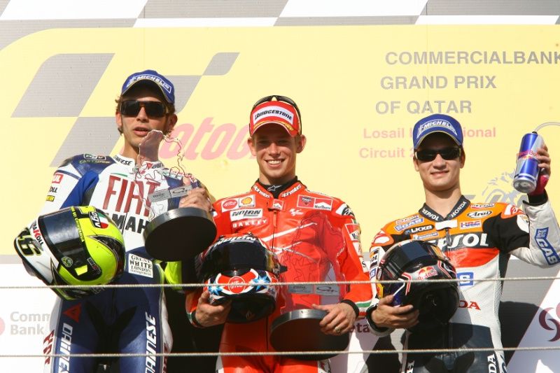 Una volta giunti al parco chiuso gli sguardi erano tutti per la Desmosedici e Valentino fu costretto a fare dei complimenti al rivale per la splendida gara. Rossi chiese anche al cronista di turno se fosse sicuro che la moto fosse effettivamente una 800 e non una 1000, da tanto andava forte in rettilineo. La verità è che quel giorno, sull’asfalto rovente di Losail, Casey Stoner scrisse la prima di una lunga serie di pagine di sport in sella a quella moto rossa. Per la precisione 23 vittorie e tantissimi podi e pole position, con la ciliegina sulla torta del mondiale 2007 vinto con un dominio totale.