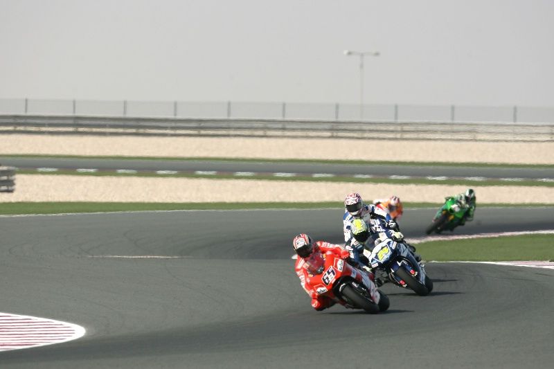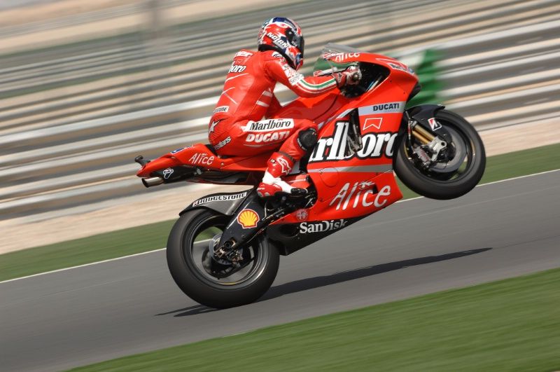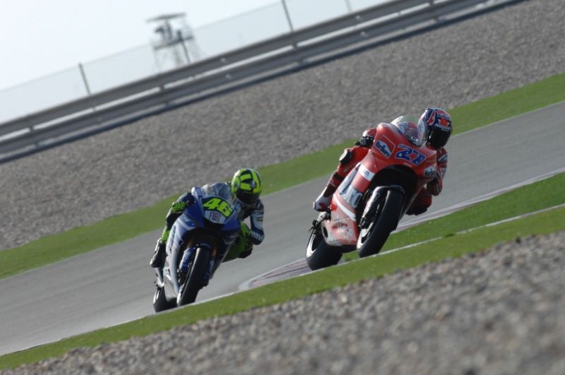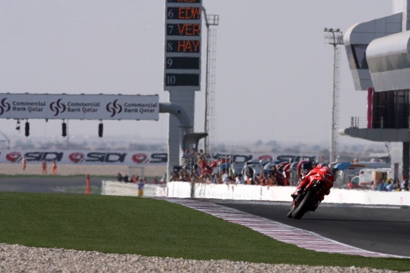 Durante i test Casey Stoner mostrò subito di che pasta era fatto, mettendosi spesso e volentieri alle spalle il pluridecorato compagno di team Loris Capirossi, vera prima guida della squadra bolognese fino a quel momento. Scesi in pista a Losail, i piloti Yamaha iniziarono presto a dettare legge segnando in scioltezza i migliori tempi in tutte le sessioni, comprese le qualificazioni. La pole la fece un Valentino Rossi tonico e preciso, riuscendo a mettersi alle spalle proprio Casey Stoner e la sua Ducati. Un dato su tutti emergeva prepotente, e poteva rappresentare un problema enorme in vista della gara. La moto bolognese in rettilineo letteralmente volava, staccando gli avversari anche di 20 km/h in alcuni passaggi. Tanto le moto del team ufficiale, quanto quelle dei clienti come la Pramac, erano velocissime. Le Ducati erano davvero imprendibili sul rettilineo, per chiunque.