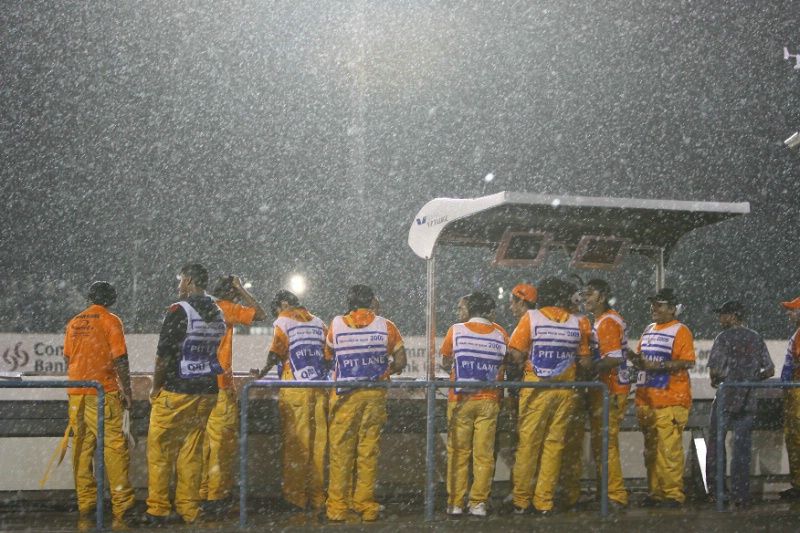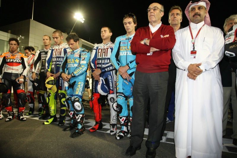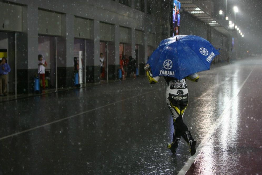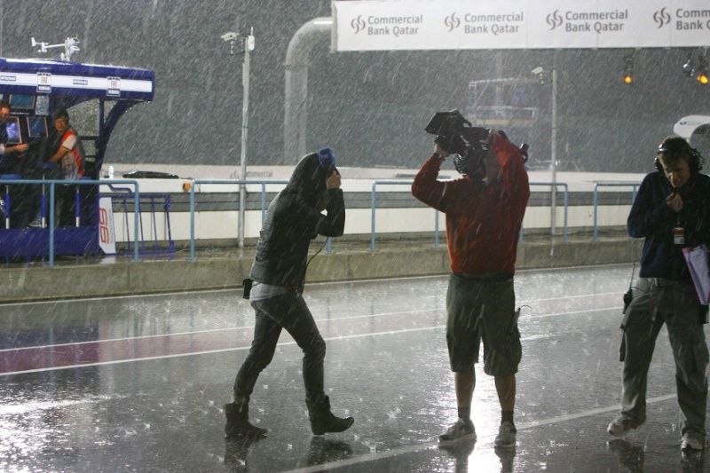 Inizio bagnato per la Moto GP. Nonostante gli enormi capitali investiti dai ricchissimi arabi per realizzare il circuito nel mezzo del deserto del Qatar, unico a veder disputata dal 2008 la gara in notturna grazie al costosissimo impianto di luci, nulla si è potuto fare contro la torrenziale pioggia. Proprio così, anche nel deserto piove!