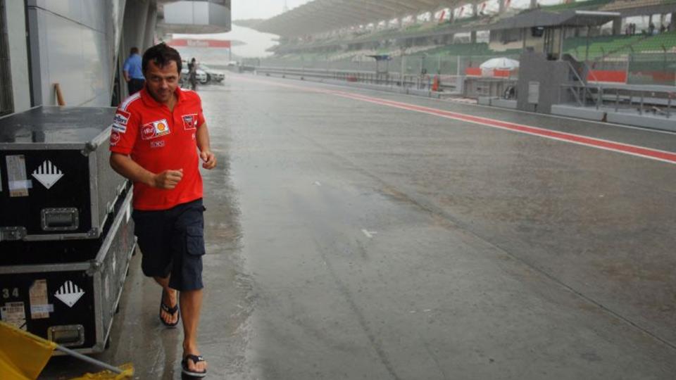 La pioggia rovina i piani del Motomondiale creando scompiglio in tutte e tre le classi che non riescono ad uscire dai box dopo le libere del mattino. A Sepang un temporale equatoriale investe 125, 250 e MotoGP che non provano nemmeno a scendere in pista a causa della visibilità pari a zero e dell’asfalto troppo insidioso.