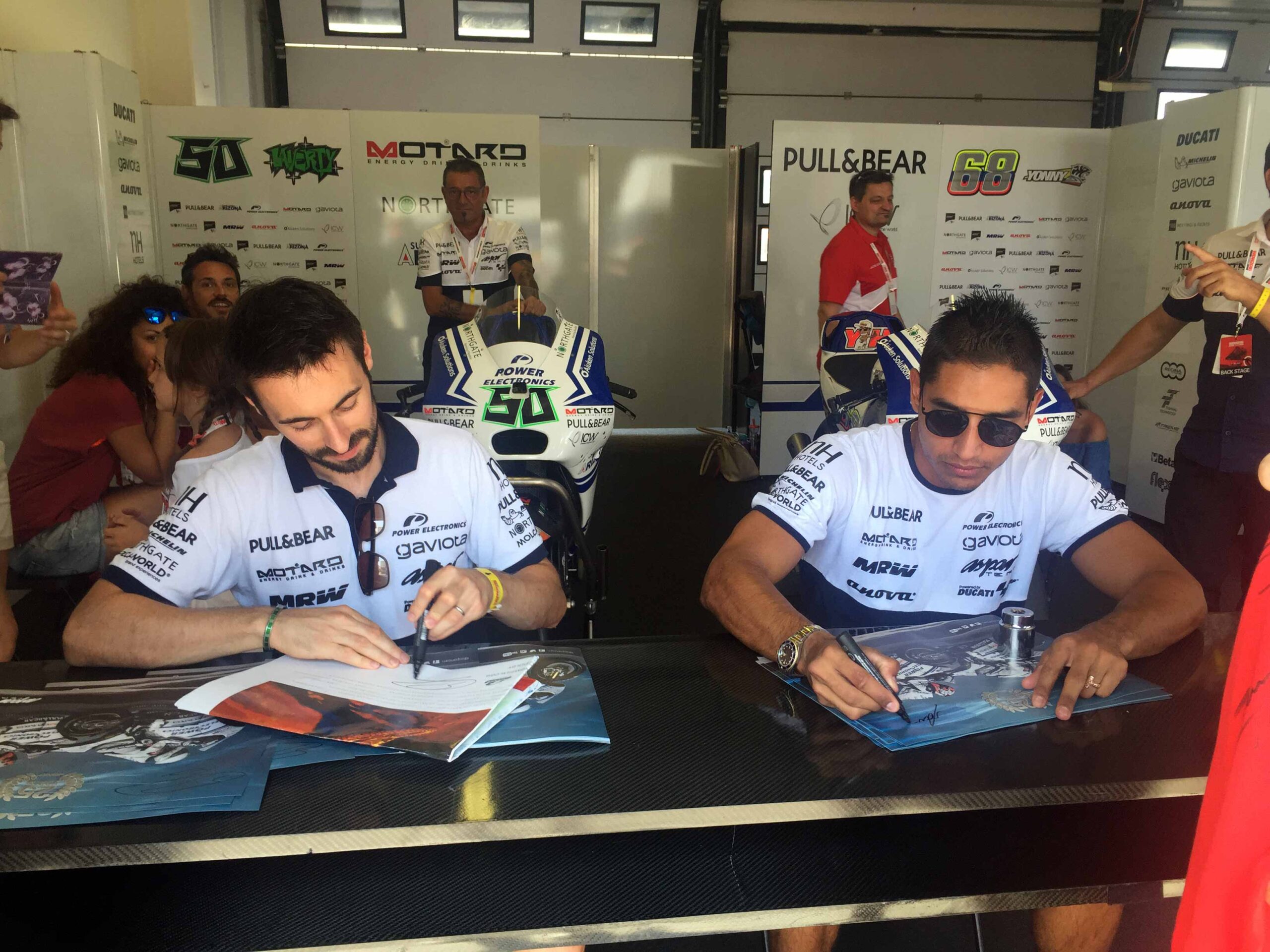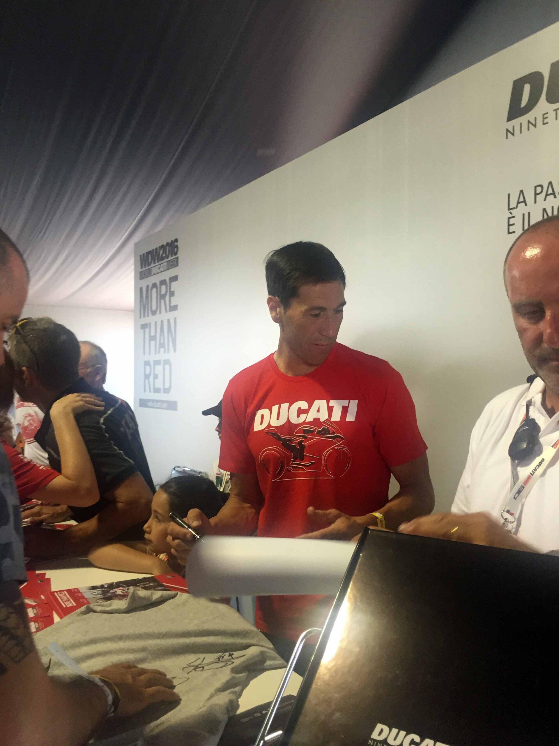 Nonostante tutti i piloti siano stati attesi e applauditi, la star del WDW è stata Casey Stoner: tornato in Ducati come tester è un’icona intramontabile per gli appassionati grazie alle sue vittorie in MotoGP. L’autraliano a fine giornata, prima di lasciare la pista è stato assalito dalle persone che non si sono fatte scappare l’occasione di farsi una foto o di ottenere finalmente un’autografo su caschi e magliette.
