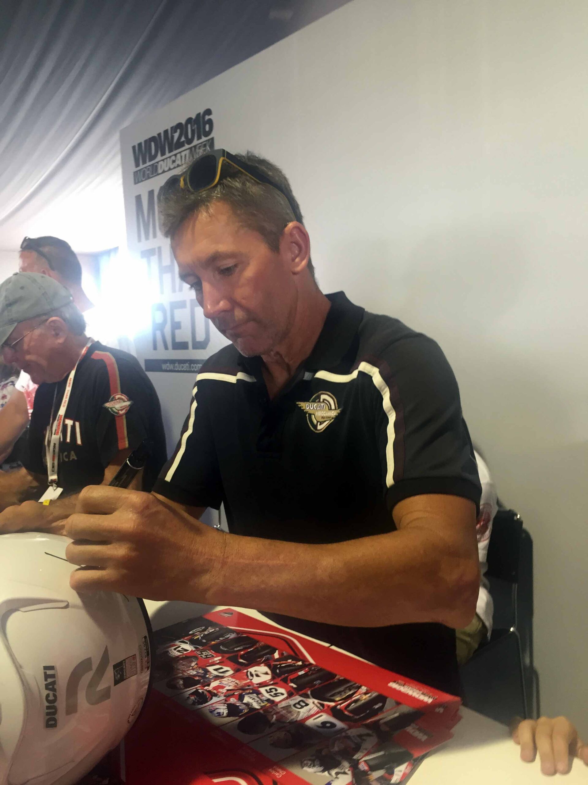 Abbiamo avuto l’occasione di fare qualche domanda a Davide Tardozzi, il team manager Ducati MotoGP. Quali sono le sue impressioni sul WDW 2016? “Questo evento si commenta da solo, ho partecipato anche in passato ma quello di quest’anno penso sia l’apoteosi, i numeri sono impressionanti ed essere qui e vedere e sentire l’affetto della gente è incredibile”.