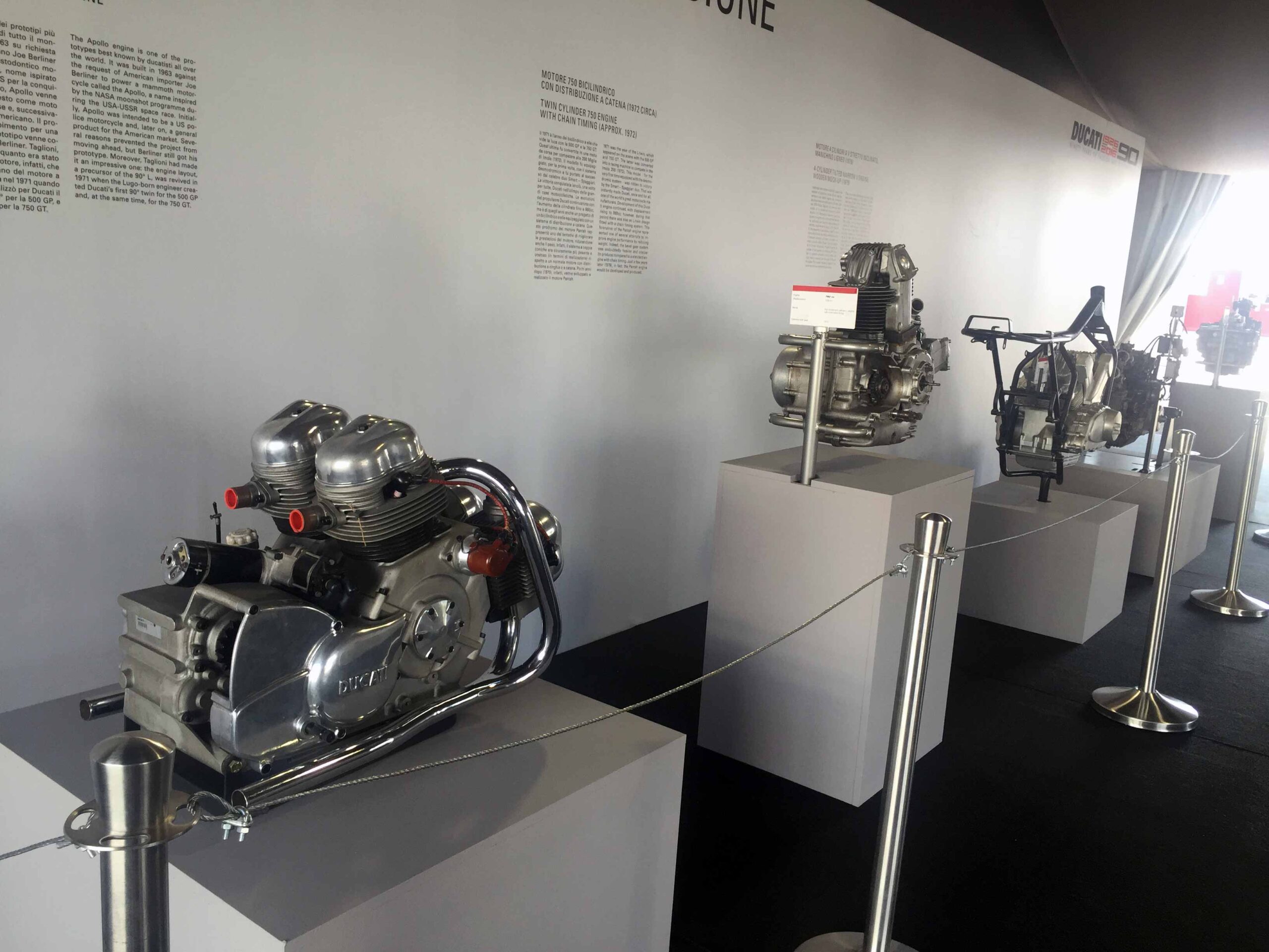 Sotto la Tenda 90° era possibile ripercorrere la storia della Ducati nel corso degli anni, erano esposti i motori più conosciuti, come il Motore 4 cilindri Apollo e quelli più misteriosi, come quello a 4 cilindri a V stretto inclinato, per arrivare all’amatissimo Desmo. Un’attività interessante di questo evento sono state le conferenze, chiamate Ducati University, che hanno permesso ai partecipanti di conoscere nel dettaglio gli aspetti tecnici e specifici dei propri bolidi.