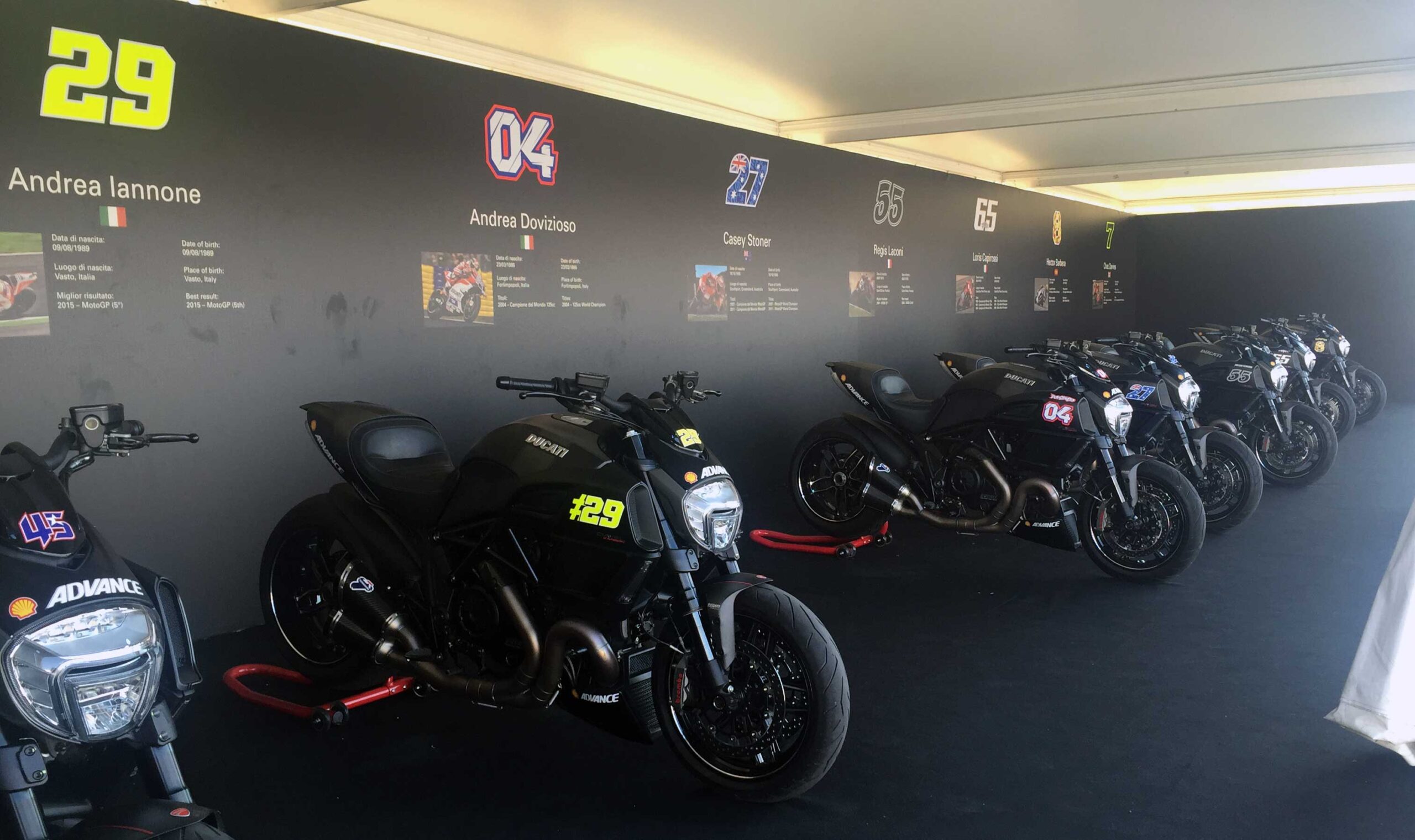L’occasione più grande però, per chiunque partecipi alla festa Ducati, è quella di incontrare i piloti di ieri e di oggi e di partecipare ad esclusive interviste, oltre a vederli in sella. La serata più emozionante è stata quella di sabato, con i riders sul palco allestito nello spazio adiacente al circuito dopo tutte le sfide che li hanno visti cimentarsi con Flat Track e con le Diavel, sfide vinte rispettivamente da Andrea Dovizioso e Scott Redding, anche se battere piloti del calibro di Casey Stoner e Loris Capirossi non è stato certo semplice.
